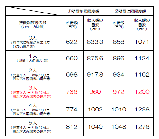 ・児童手当:所得制限限度額未満の方