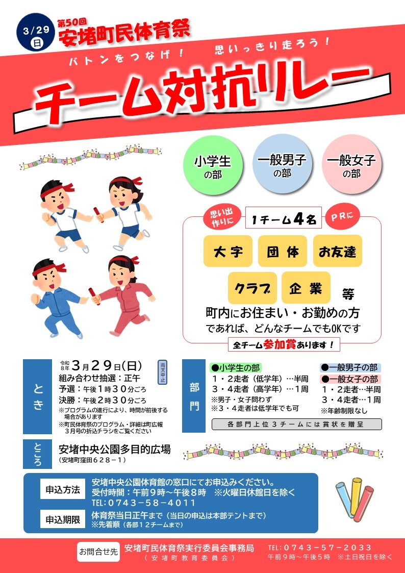 第50回安堵町民体育祭「チーム対抗リレー」出場チームを募集します