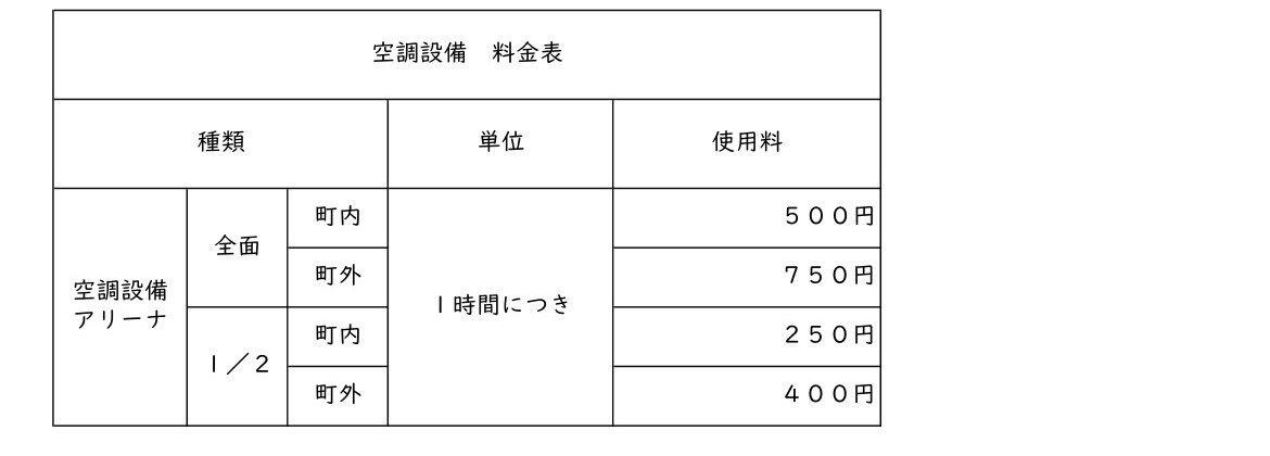 空調設備を常時稼働させることとし、アリーナ使用料に空調設備使用料を加算した額となります。